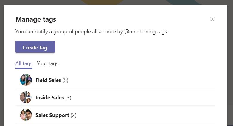 Imagine a scenario where someone in a Team wants to specifically start a conversation with just three or four people – a sub group – within the Team. Think of a project manager who wants to reach out to provisioners. A teacher who wants to reach out to learning assistants. A head coach who wants to reach out to assitant coaches. A CEO who wants to reach out to sales. This individual targets specific team members – but doesn’t want to mention and disturb the whole team, the whole channel and doesn’t want to go through the laborius process of mentioning each individual team member. This is now possible with Tags. Tags let users communicate with a subset of team members without disturbing the whole in a targeted manner. Both owners and members (if enabled) can add one or multiple tags to a team member. The tags can then be used in @mentions by anyone on the team in a channel post or to start a conversation with only those people who are assigned that tag.