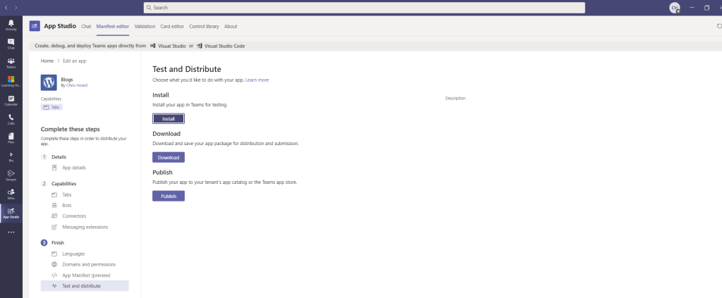 A few weeks ago I wrote a blog covering how to install Microsoft 365 learning pathways into Teams. It was one I had intended to write for some time because I often recommend pathways to many organisations who I work with. It’s a great way of using Teams and SharePoint together – but I particularly like the ability to go on, once it has been deployed, to customise and add your own learning paths tailored for your own organisation and users. Now, during the writing of this blog and using App Studio, I realised how cool it would be if I could bring a lot of the content I read everyday into a single app within Teams. The content I am referring to here is blogs. There are a ton of great community writers out there – many of them are my friends – and it would save me a ton of time being able to have them all in one place where I am now doing most of my work. And before you say that I could just use the web app, I don’t want these to be Team specific – I want them on the App rail because this content is personal to me