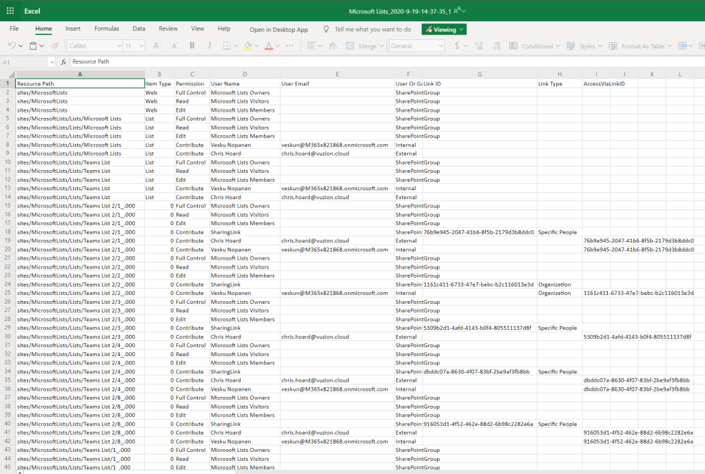 We can use sharing reports in OneDrive and SharePoint to see who we are sharing our lists and list items with inside and outside the organisation, what permissions they have and how they have been shared. We can then leverage this information to clean up or continue to permit sharing based on our requirements. It is recommended that this is reviewed regularly for both administrative and security purposes and admins do have oversight in the audit log and ultimately, control via the SharePoint admin centre. In an ideal world, only those who need access to lists and list items should have them. We should be diligent and review periodically. Administrators can look at link expiry or methods to control external sharing such as domains and security groups should they ever feel the need to go further