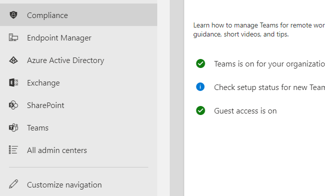 2.) On the left Navigation select show all then select Teams