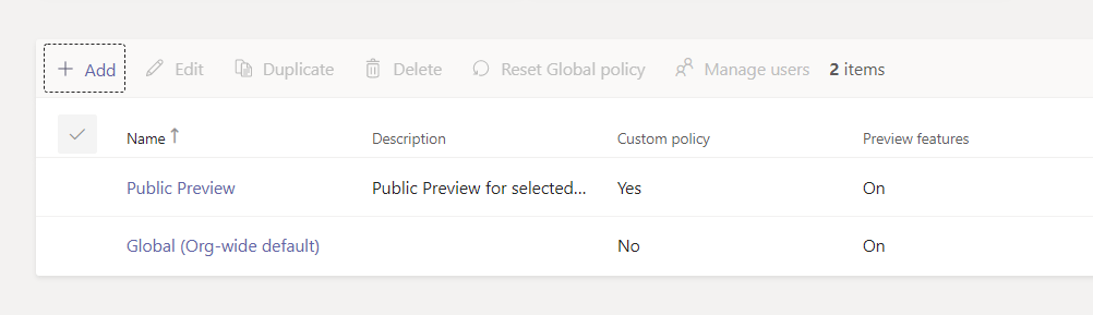 - Enabling Preview features for all in the Global Org Wide Update Policy