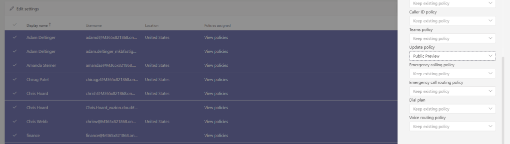 As opposed to applying the update policy to all, you may only want to allow public preview to specific people in your organisation. This is easy to do
