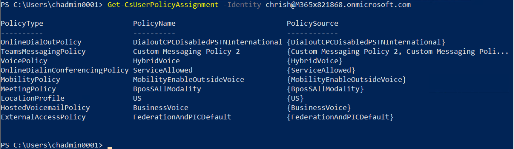 Grant-CsDialoutPolicy -Identity “<username>” -PolicyName “DialoutCPCDisabledPSTNInternational”