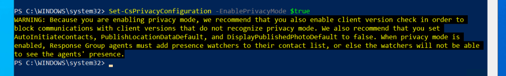 Set-CsPrivacyConfiguration -EnablePrivacyMode $true
