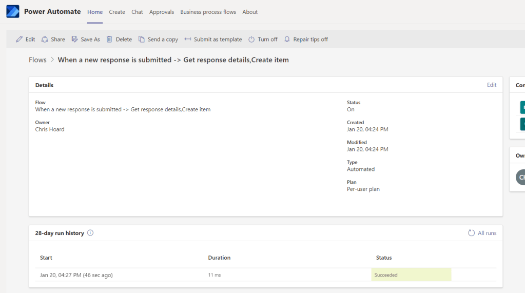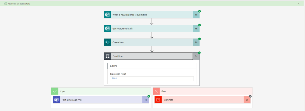 13.) The response will be written to the List in Teams having been successfully executed in Power Automate
