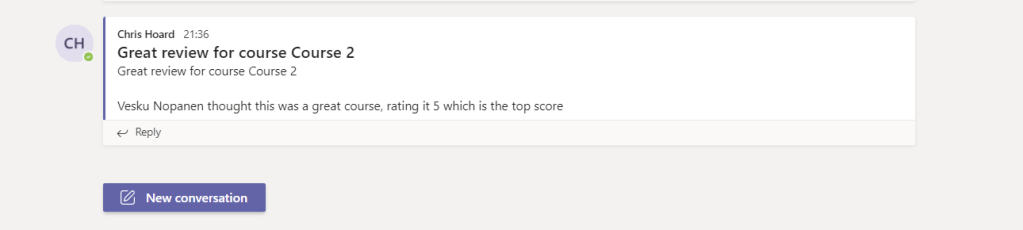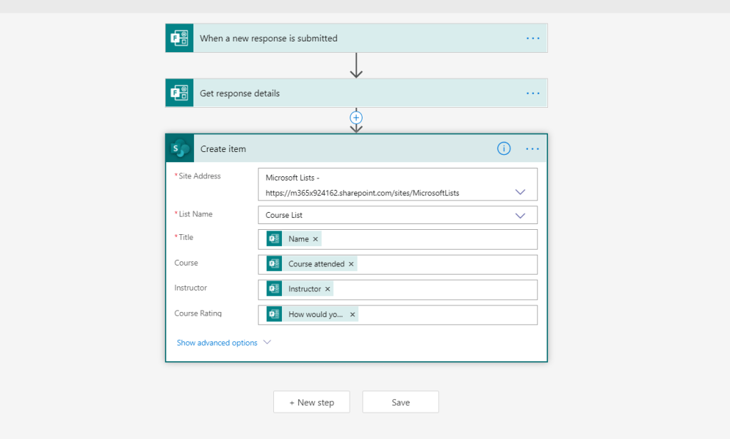 Ok, the flow has been created – it works well it’s saved me a load of time. However, what if I want to, say, perform an action on those responses in the List. The scenario is receiving feedback from courses. What can we do when I want to know if the course has been well received? I can extend the Flow and use the condition control to do this. Let me show you.