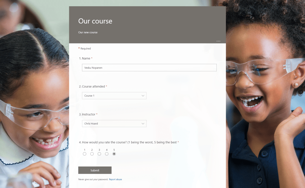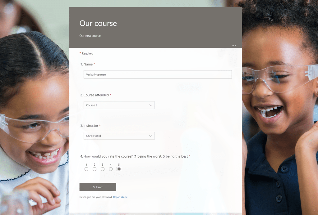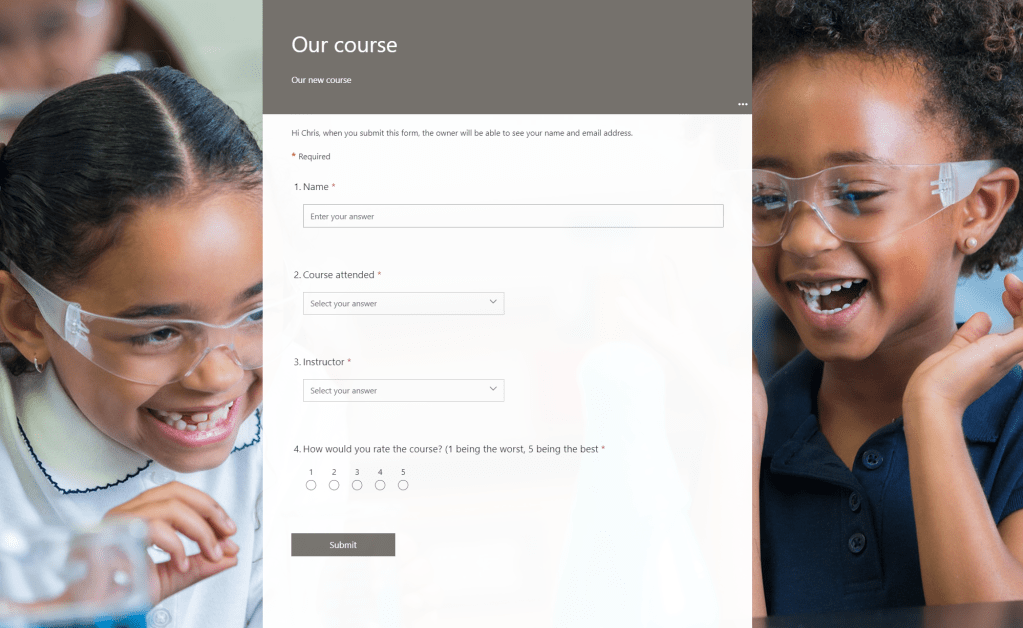 So imagine this scenario. I run technical courses that people attend. Multiple courses. I don’t want to have to design a form for every course. I don’t want to have to deal with all the excels that Forms use. Too fragmented. Too much time putting all the information together. Here’s what I need. I need one form. I need every response from every course to be in one form and deposited into someplace central where I can track responses for any course I run then slice up the data