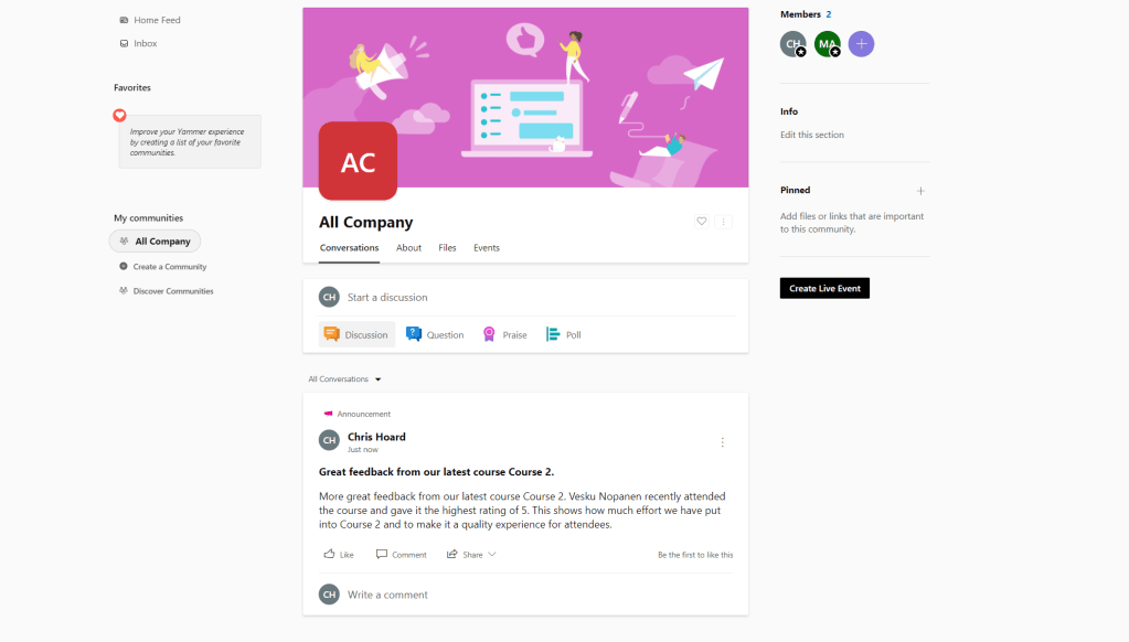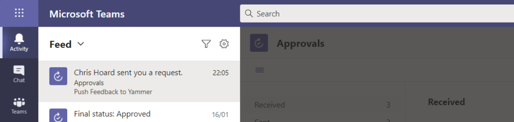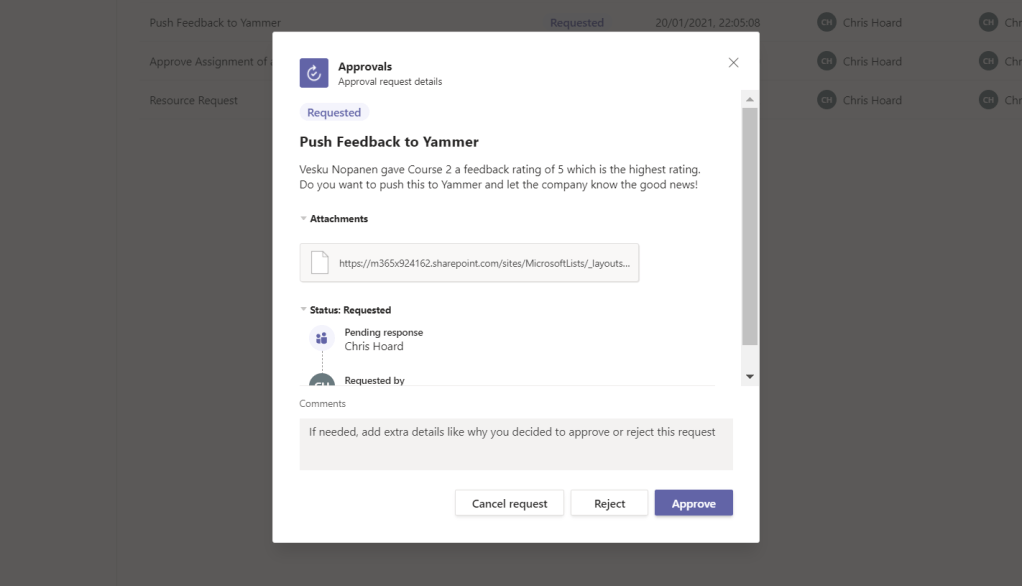 4.) I receive an approval to push the feedback to Yammer which I approve