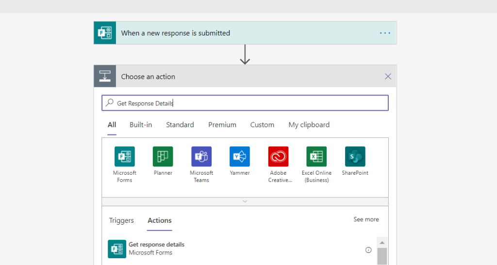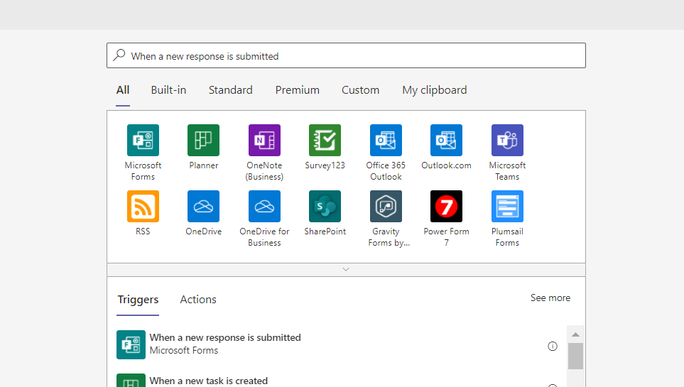 5.) Search for and select When a new response is submitted (Forms Trigger)
