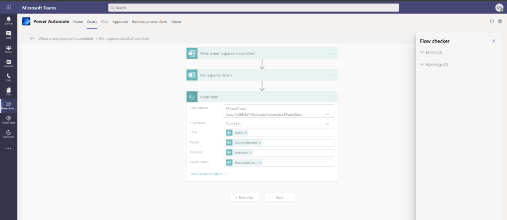 Due to the potential length of this blog, it will not go through every step and will assume that you are familiar with the apps discussed where Lists and Team have already been set up