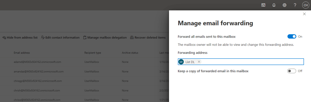 16.) Forward all emails sent to this mailbox (swipe on), add the mail contact previously created and select Save
