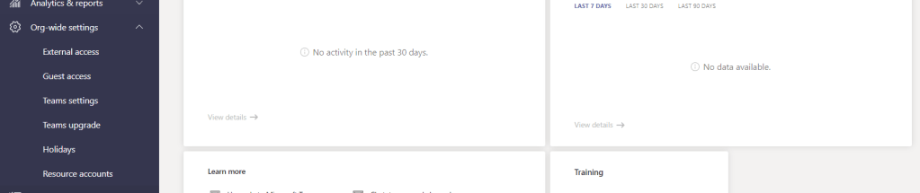 4.) In the Microsoft Teams Admin Centre select Org-wide Settings then Teams Settings