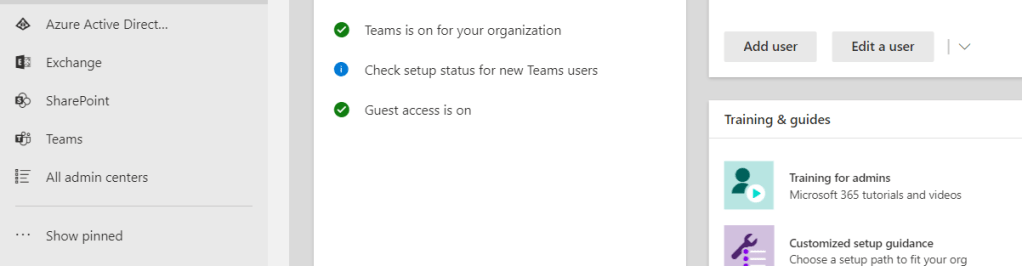 3.) In the Microsoft 365 Admin centre select show all from the left navigation and then select Teams