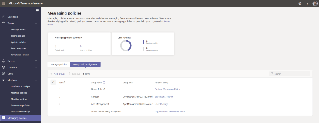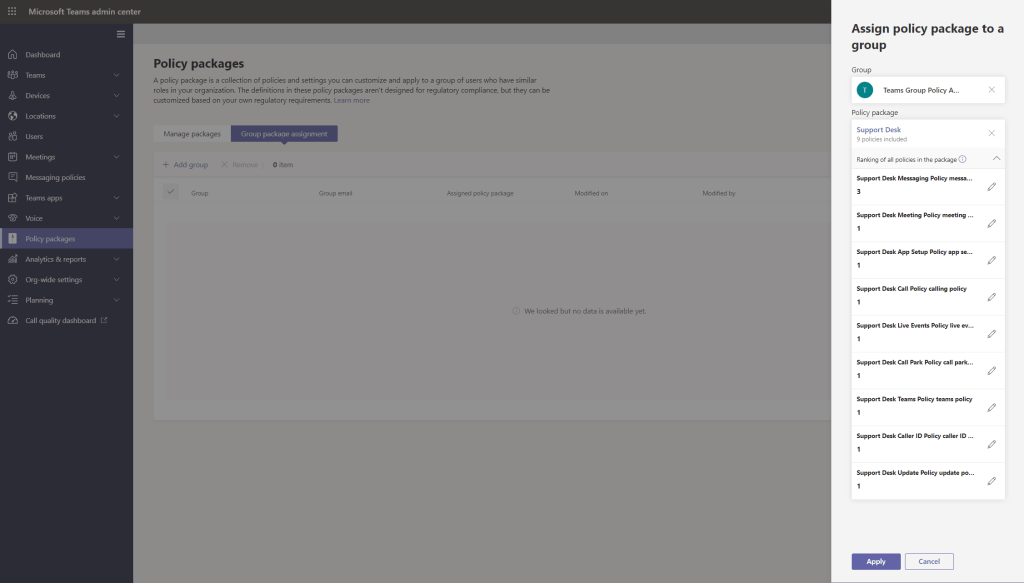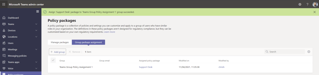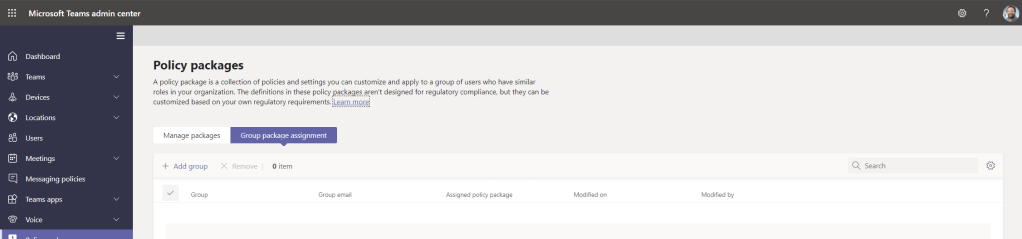 2.) Return to the policy menu in the Microsoft Teams Admin Centre and select Group Package Assignment