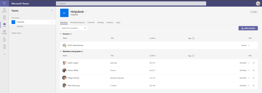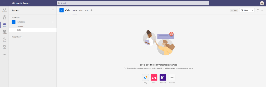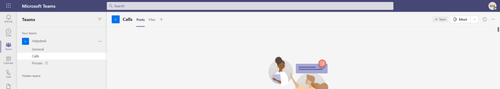 1.) Ok, Collaborative Calling is adding a Call Queue to a channel in a Team. The first thing you should do is ensure that you have set up the Team and have all the members in that Team. Here, I have set up a Team called Helpdesk which has all the members who will take calls from the call queue.
