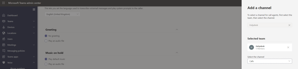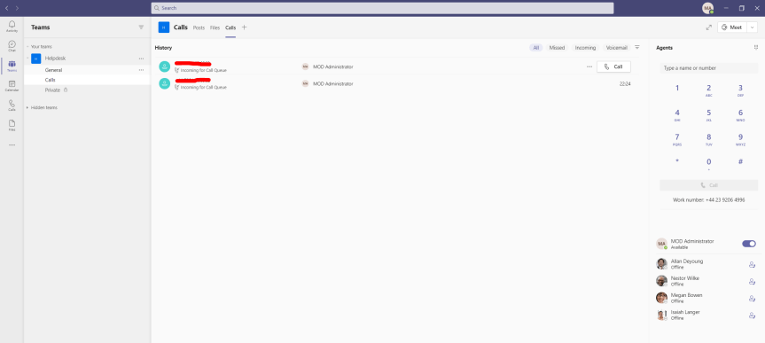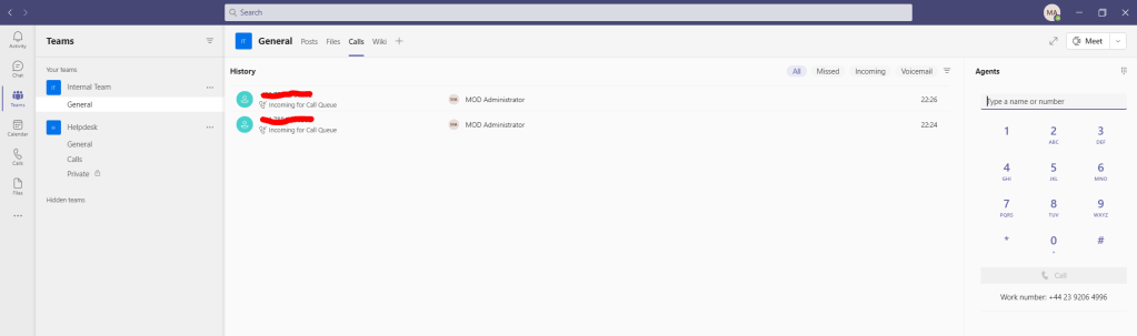 If required, add a channel to the Team which will be specifically used for the Call Queue. The one here has been setup called Calls