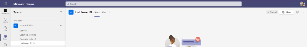 - Setting up the team/channel ready for the list and the Power BI Report