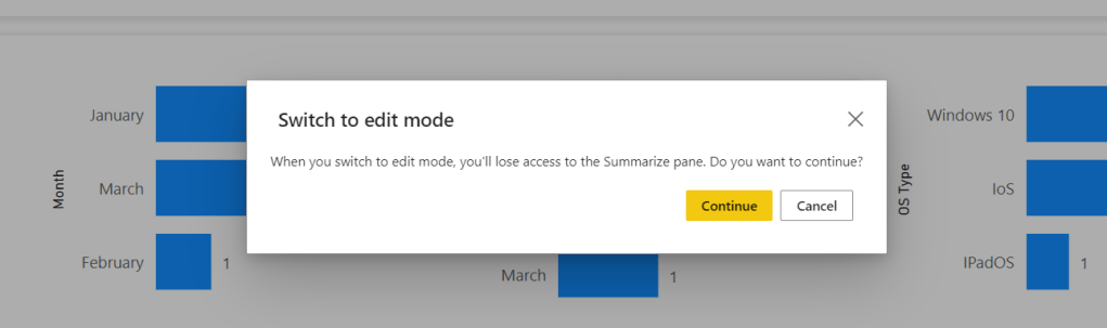 3.) Select Continue. When first accessing edit mode you’ll lose access to the summarize pane after this point. This is ok since you have everything you need moving forward with the editing tools