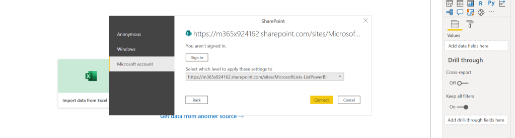 3.) Search for SharePoint. Select SharePoint Online List then Connect