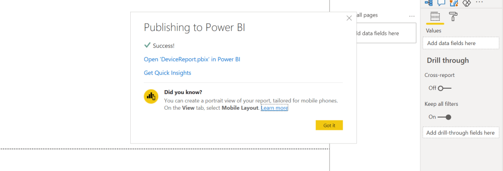 16.) The report is now published. Select Got it