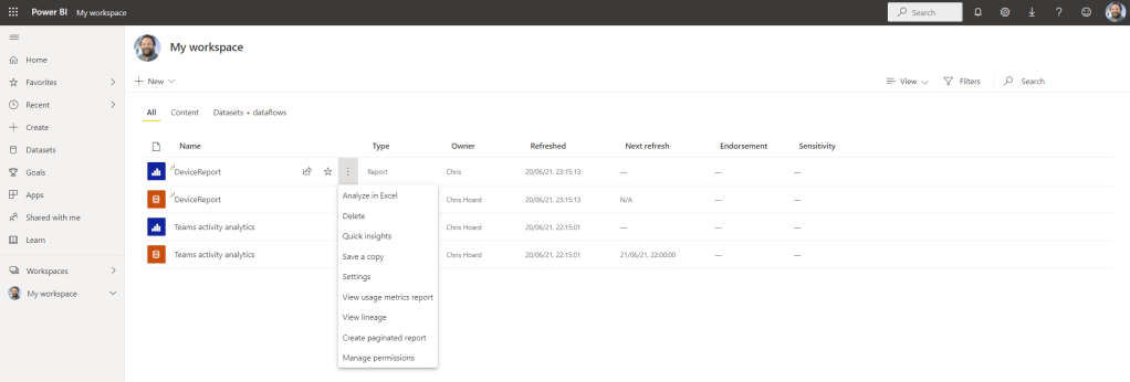 This new functionality of being able to generate Power BI reports off of Microsoft Lists – it is easy to do. It can be done in a matter of minutes. The reports are closely linked to the List and ultimately we can get them into Teams albeit via a web app in a channel or as a personal app via App Studio. The limitation we have at the time of writing is that they don’t surface and we can’t surface them in the Power BI app itself and because of that we lose a level of integration that others may want to see. Some will say this – it’s a Power BI report why can’t I see it in Power BI? I admit the question isn’t without merit. The same applies in terms of using the report with other apps such as Power Automate. How can Power Automate work with the report if it’s not even showing up as a report in Power BI? Now of course, the Power BI report created off the back of the list may be enough for some; it’s quick and you don’t need to be technical to create it – even to do visualisations given that you have some time to get hands on and play around. Yet I imagine others will want their Power BI reports based off lists in the Power BI App along with all their other reports, and in so doing will happily continue to build these reports in Power BI Desktop. Yes, it takes a bit longer but the app is deeper so for the Power User and the BI expert it offers more. Also, the integration speaks for itself. The report appears in the Power BI App, in Teams in a channel, in the personal app sitting alongside all your other reports. My feeling is that this all comes down to where users will expect to see the report, as well as how it integrates into the existing experience across Microsoft 365. Most likely, it’s going to go on a path which looks to bring all of this together. Visible in the Power BI App. Visible in Lists. Visible in Lists in Teams. Visible via the Power BI App in Teams. Consistency across the experience matters. I look forward to seeing how this one develops
