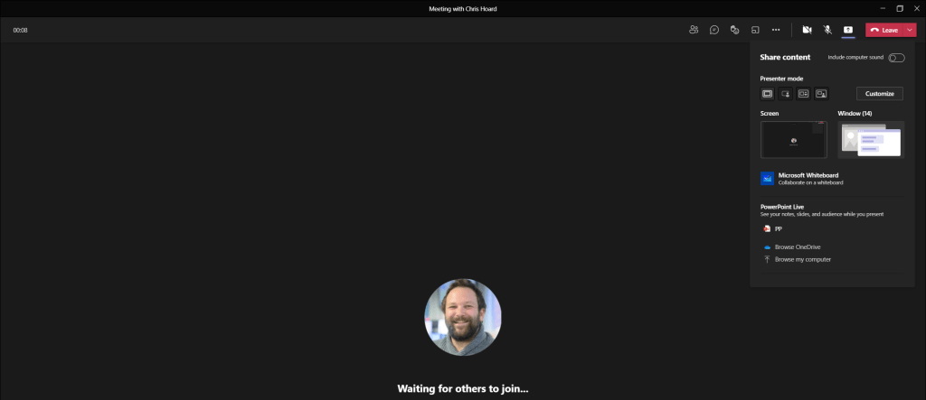 8.) Log out and back into Teams. Test out a meeting. No more Freehand by InVision for any users in the organisation in meetings