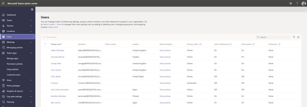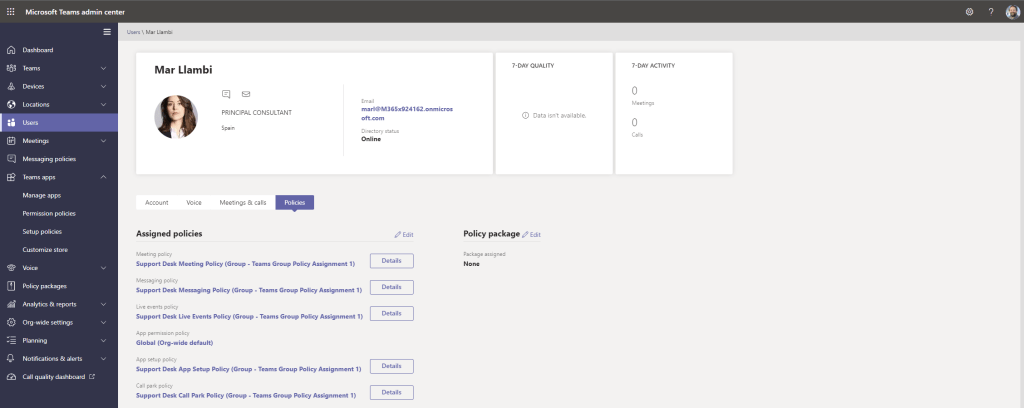 8.) Confirm the policy is created. Now the policy is created we need to assign it to users. There are several different ways to assign a policy in Teams including direct assign to the user, batch, group and policy package, however this example is simply going to cover direct assign to the user. Select Users from the left navigation
