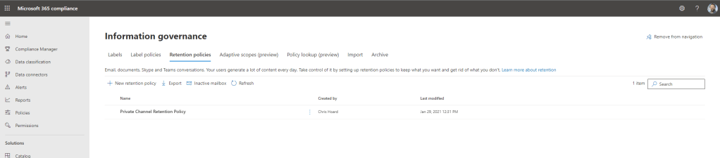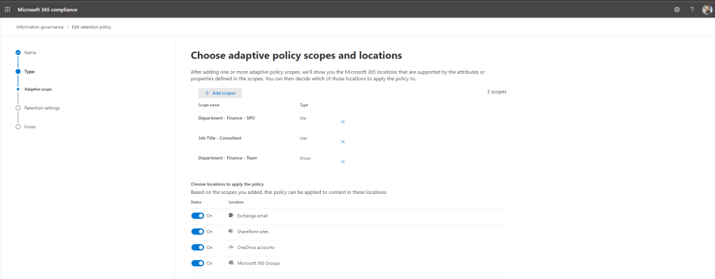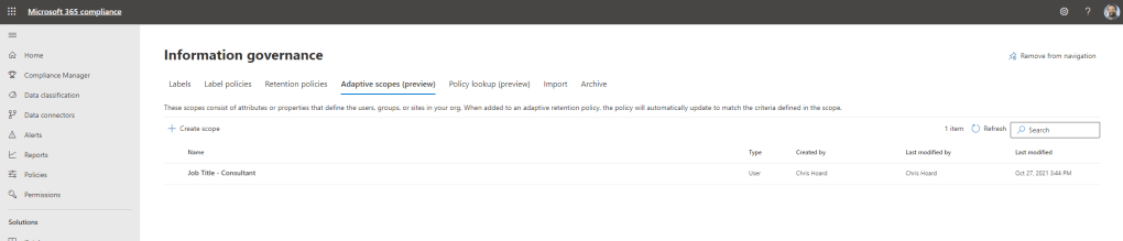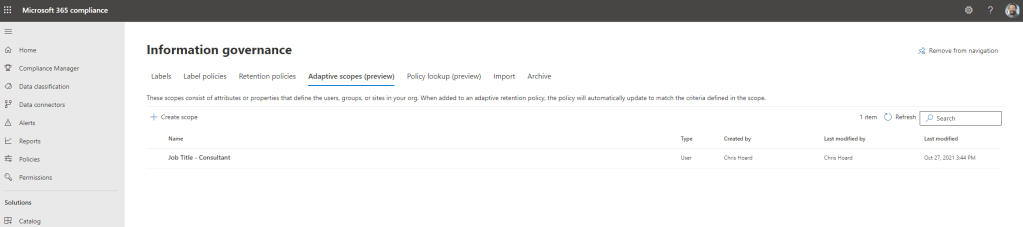 I am about to go into one hell of a month. Starting with Ignite next week (2-4 Nov) I have a number of teaching deliveries and a lot of course updates. I am also back on the circuit courtesy of aMS Germany and Power Platform France. As always, thank you to the organisers for having me. Yet, despite all this good stuff I am also acutely aware that I haven’t done any technical writing on the blog since the day before I got Covid – and as my good friend Vesku Nopanen released one today on the new Whiteboarding features in Teams, the situation demands I write. So where to start? Having effectively had two months off I can certainly say I am not in short supply of subject matter – but one that I thought I would start on since I am really interested in it is adaptive scopes for retention and label policies.