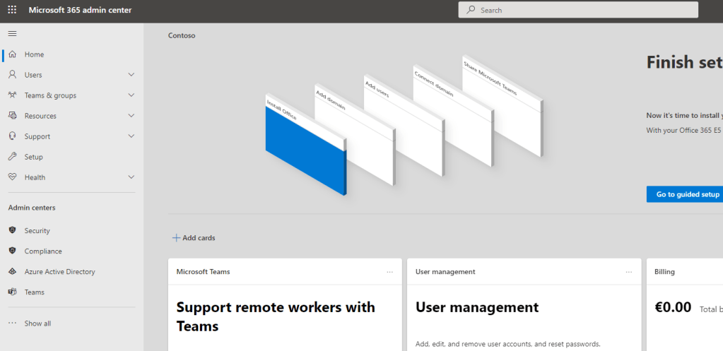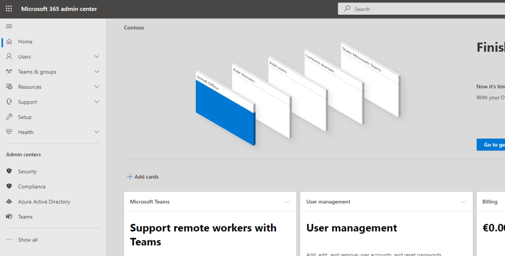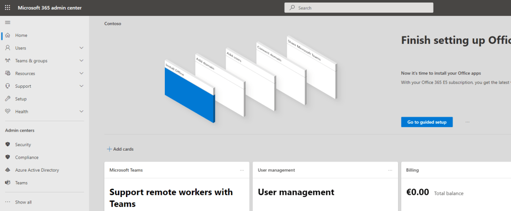 1.) Let’s get back to the Microsoft 365 Admin Centre. Select Azure Active Directory