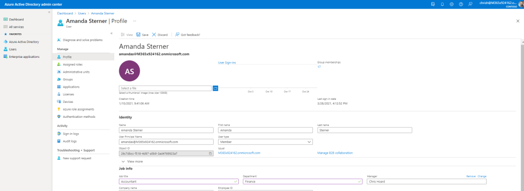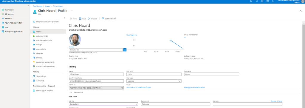 3.) The first job is to ensure Azure AD has the correct information. In the Microsoft 365 Admin Centre, select Azure Active Directory from the left nav