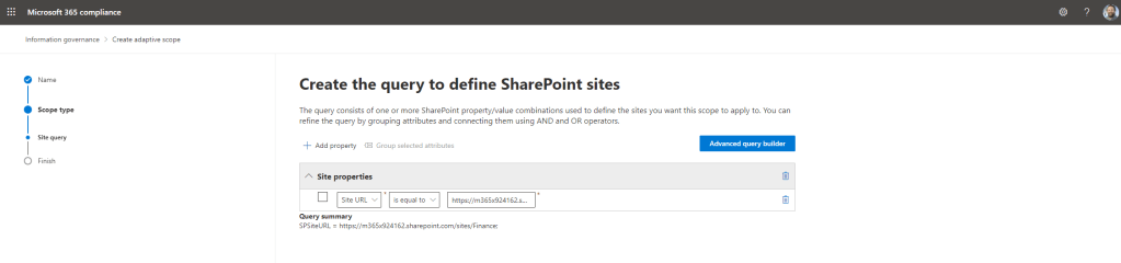 Or create a new policy purely based upon the Site adaptive scope. Of course, splicing the new Site adaptive scope within the existing retention or labeling policy has an impact on the naming conventions so this ideally needs to be thought through at the start. Seperate policies would probably be the way to go, or a static scope based upon that specific site.