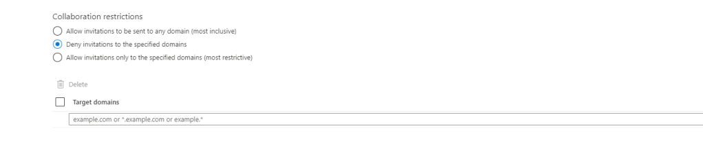 7.) Under Collaboration Restrictions select Deny Invitations to the specified domains