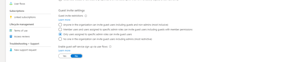7.) Under Guest Invite Settings select Only users assigned to specific admin roles can invite guest users and then Save