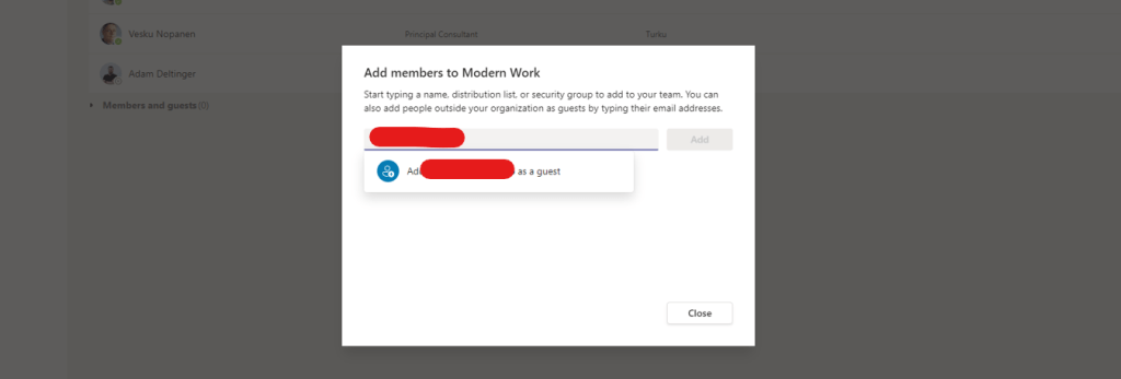 Now with the active Guest Inviter role Vesku can add the guests to his team
