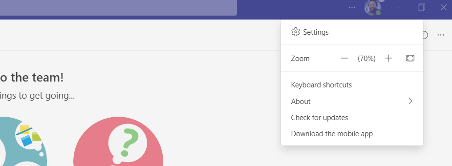 1.) In the Teams Client select More Options (…) next to the Avatar and then Settings