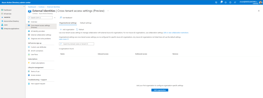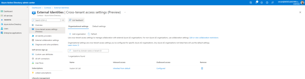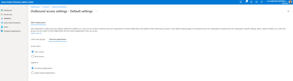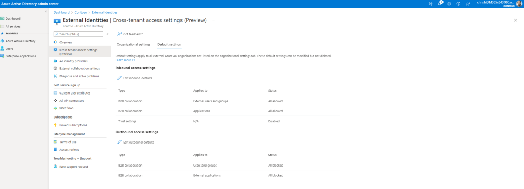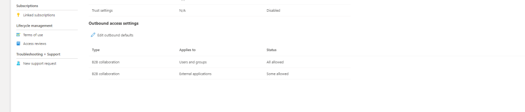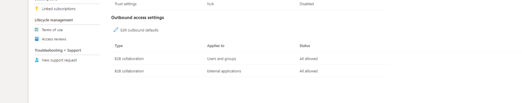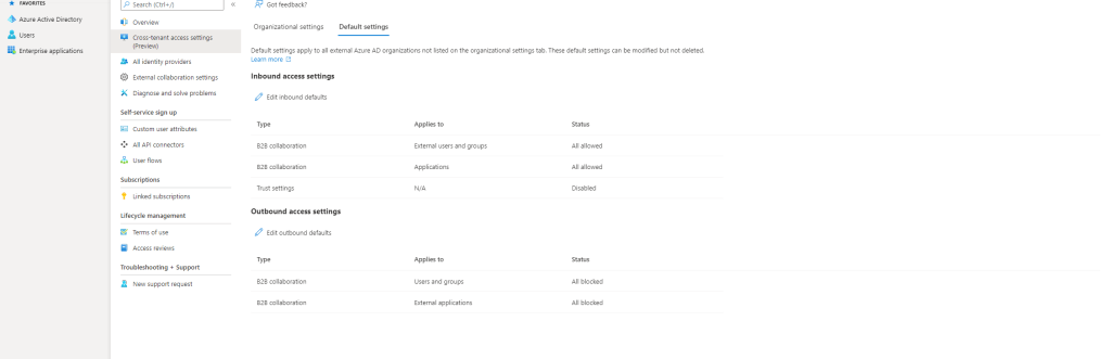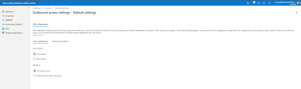 4.) By default Azure AD will use the defaults. Under Outbound Access select the hyperlinked Inherited from Default