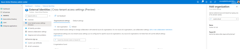 3.) Search for and add the Organisations Domain. Azure AD will identify the other organisations tenant – then select Add