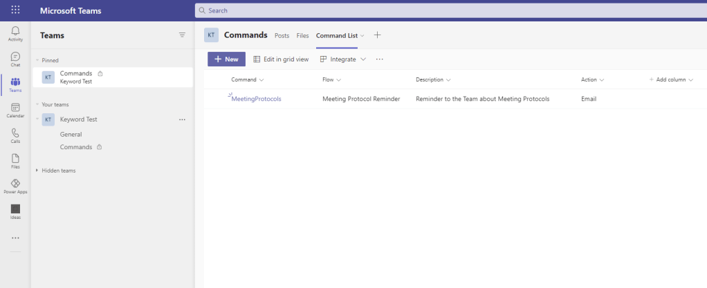 Hands up! There was a time when I was dead against automation. Early in my IT career I was a provisioner and back then all the setups and the migrations were done manually. Can you believe there was a time when we used to move mailboxes by Exmerge and via SFTP servers? That’s right, 5 hops of live data. Or when we used to login manually into DNS servers to manually add DNS records to zones? A record by A record CNAME by CNAME. Yeah I remember it. But why was I dead against automating that? Because I am human. I thought that automation wasn’t having faith in people. I thought it would ultimately lead to us all being done out of the job. So here I am. 14 years in. It never gets any less busier. It is, by all accounts, the myth of Sisyphus. But I get automation now. I got it when I went through a period a few years back where I was so busy that I practically couldn’t cope anymore with the volume so needed to learn Power Automate to save minutes, minutes which turned into hours. Now? I use it extensively. I’ve blogged previously on some of the ways that I use it in my job. How I use it with Lists, and Forms, and Approvals. I use it with Dynamics. So I was excited to see, having been away a while, that Power Automate released a trigger for Teams which uses keywords.