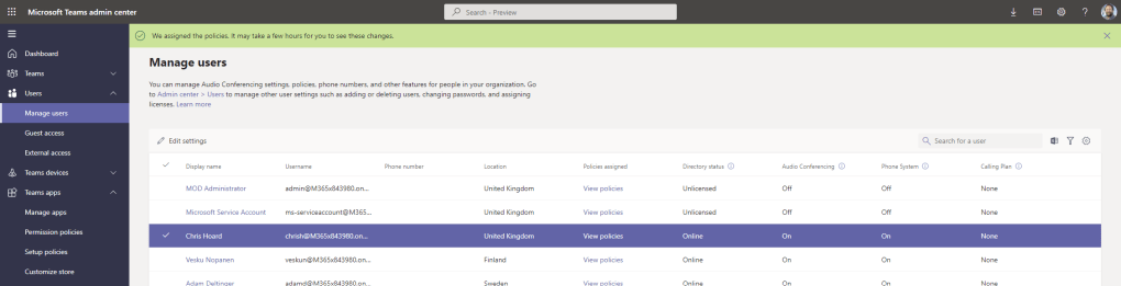 18.) Drilling into the user, the new policy has been applied