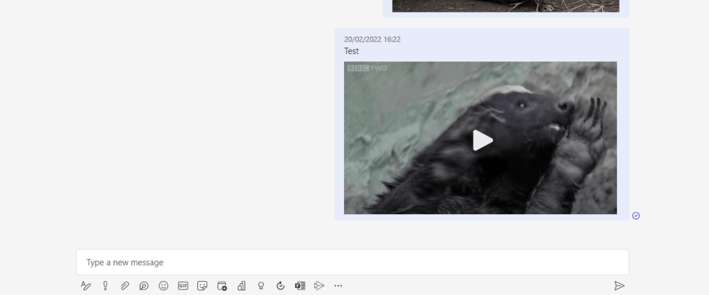 After a few hours check in the Teams Client that the messaging extensions have updated when composing a new message. They have updated for both Teams private chats (as shown) and for Teams Channel Conversations