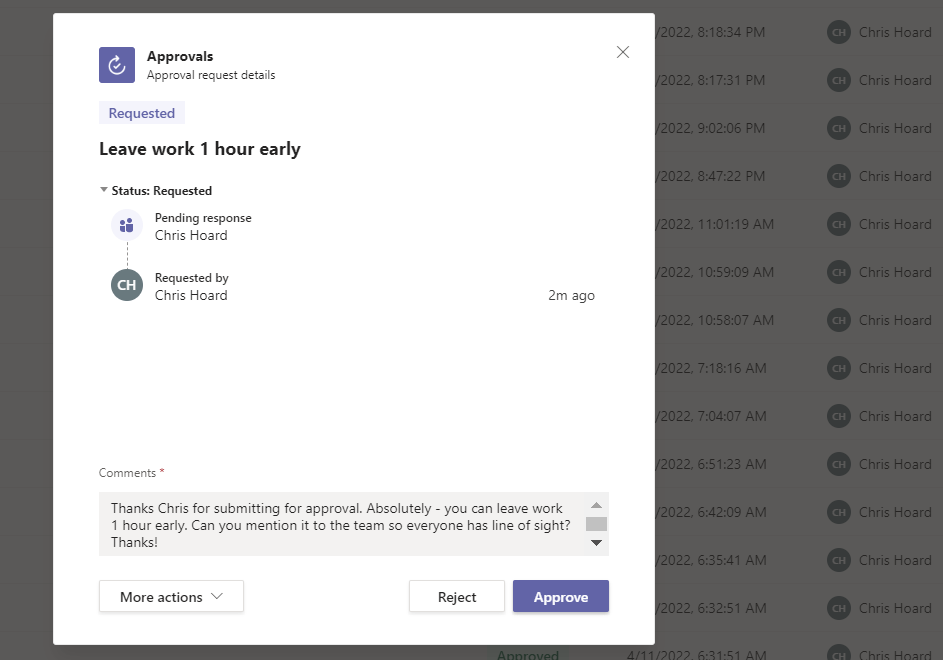 Most recently – mainly the last six months or so since Covid – I feel that I like I have kinda pinballed around in the Teams ecosystem having no real sense of focus. Life is busy. Work is busy. I have been up to my eyeballs in Azure Plan, the New Commerce Experience (NCE), CloudBlue Connect, Catalogues, Packaging, JTA’s, writing new courses. Teams Nation. The latest project – or should I say the latest shipped in an ever spinning batch of projects – has been expanding operations and edu out into the MENA region. All fun. All for the greater good! Yet I’ll be the first to admit that I’ve taken a bit of a hit on the community end. I haven’t talked so much this year. I haven’t blogged or done social as consistently. I’ve sloped off a few things like the Microsoft Tech Community. I’m well aware of it – and as a marathon compared to a sprint it’ll no doubt self adjust and correct given time. But also I find I am in one of those periods when I am genuinely in a quandary about what to focus on given there is just so much exciting stuff out there at the moment. I am really interested in learning more on KQL and doing more in Azure. I am doing loads and want to do more with Power Automate. Same with Compliance. Same with Azure AD and Identity. With Teams? I’ve always been one for the little things. Sure, I may get around to the fanfare and hoopla that is Shared Channels, but whilst I could say that twenty MVP’s have already done this, it’s the little vital things that delight me. And so after discussing a range of, I guess, niche subjects the last few weeks, like hiding file sync, and disabling shortcut to OneDrive, and the ability to trigger flows with keywords, and audio conferencing, and app setup for messaging extensions, I am going to talk about enforcing comments in the approvals app. Yes, I wanted this. I wanted this bad. Because generally speaking I have never really liked blind approvals. I like context. I like to give context. This will be a short one because really it’s an awareness piece as much as being a technical blog.