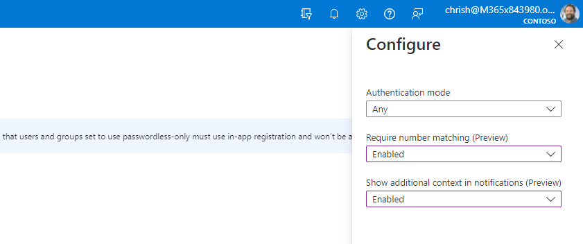 A. According to Microsoft number matching will be automatically turned on a few months after it has entered GA. At the time of writing, it’s still in preview. Regarding Additional Context there is nothing specified, however it would make sense to auto enable both these settings as the authentication experience is just so enhanced.