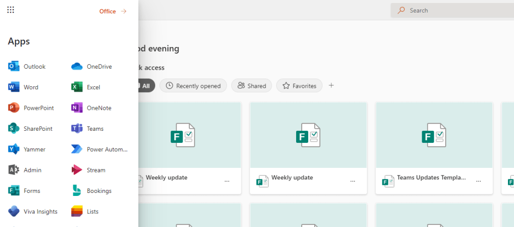 7.) Return back to office.com and important – refresh the page – and then from the waffle select Stream again