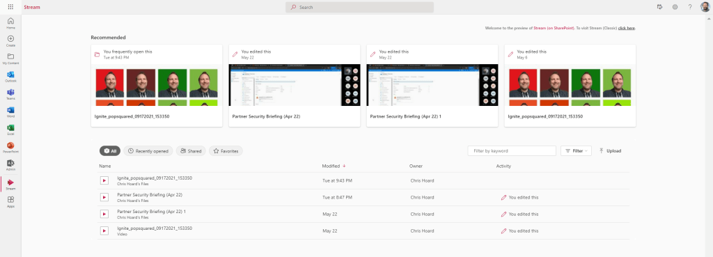 8.) It’ll now direct to stream.office.com, the new Stream on SharePoint web app