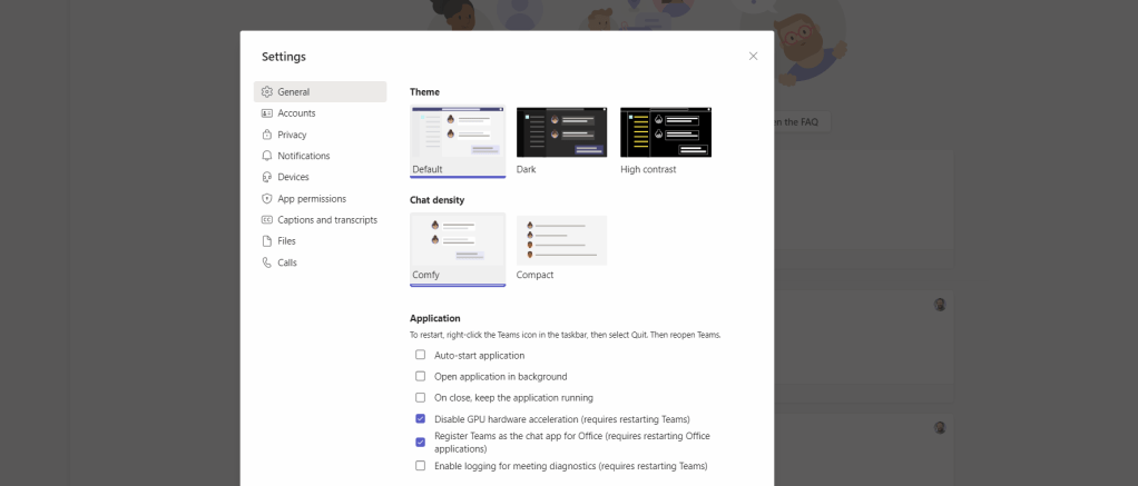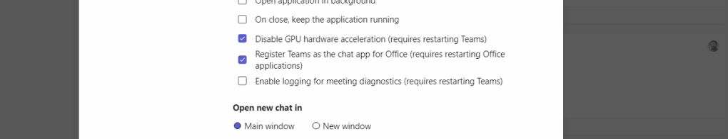 2.) In the General menu, tick Enable logging for meeting diagnostics (requires restarting Teams)