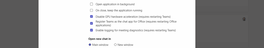 7.) Going back into the setting in the Teams Client Media Logging is enabled