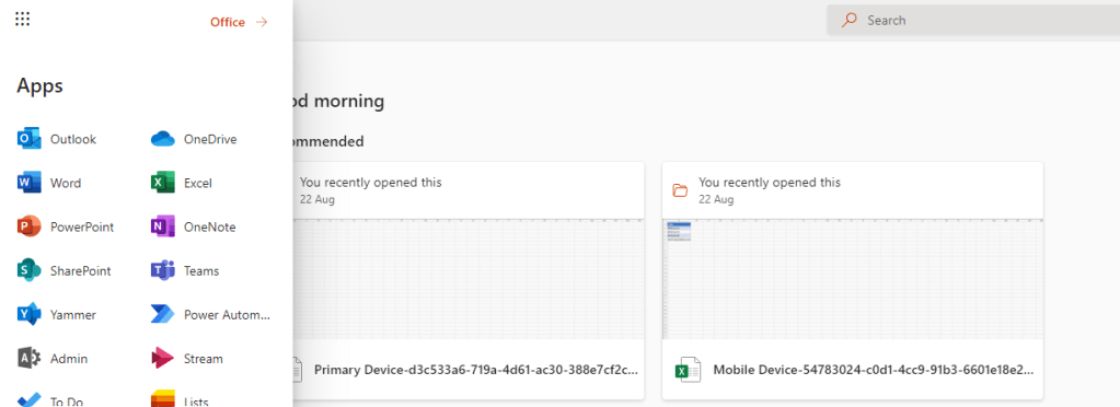1.) From the waffle, or from the left app rail select OneDrive