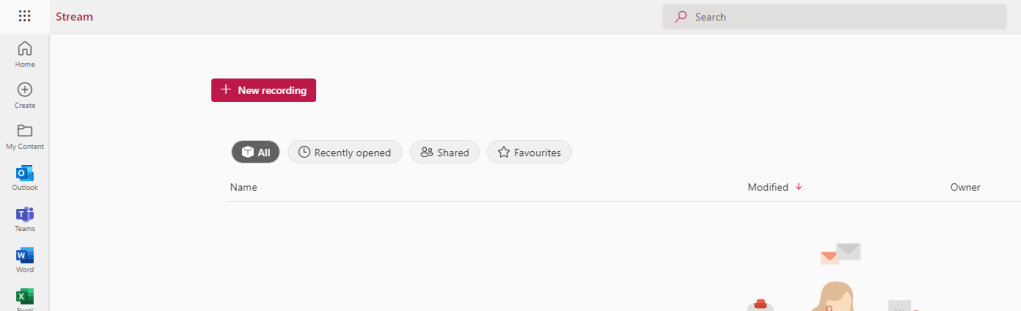 3.) The red New Recording button is straight in front of you on the top left of the Stream on SharePoint home page