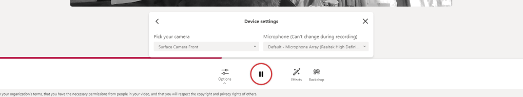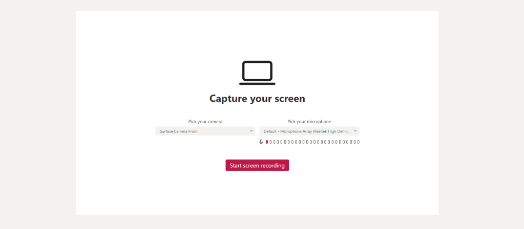 Now we can record the screen with ease, lets record via our camera. This example is an inbuilt camera in a Surface Laptop.