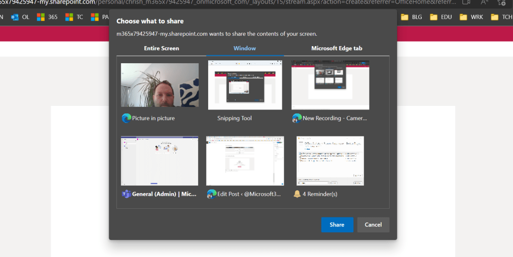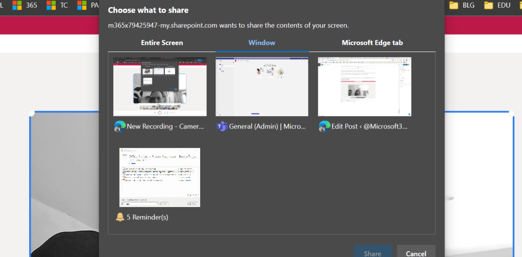 5.) Choose Entire Screen, Window or Edge Tab and then Share